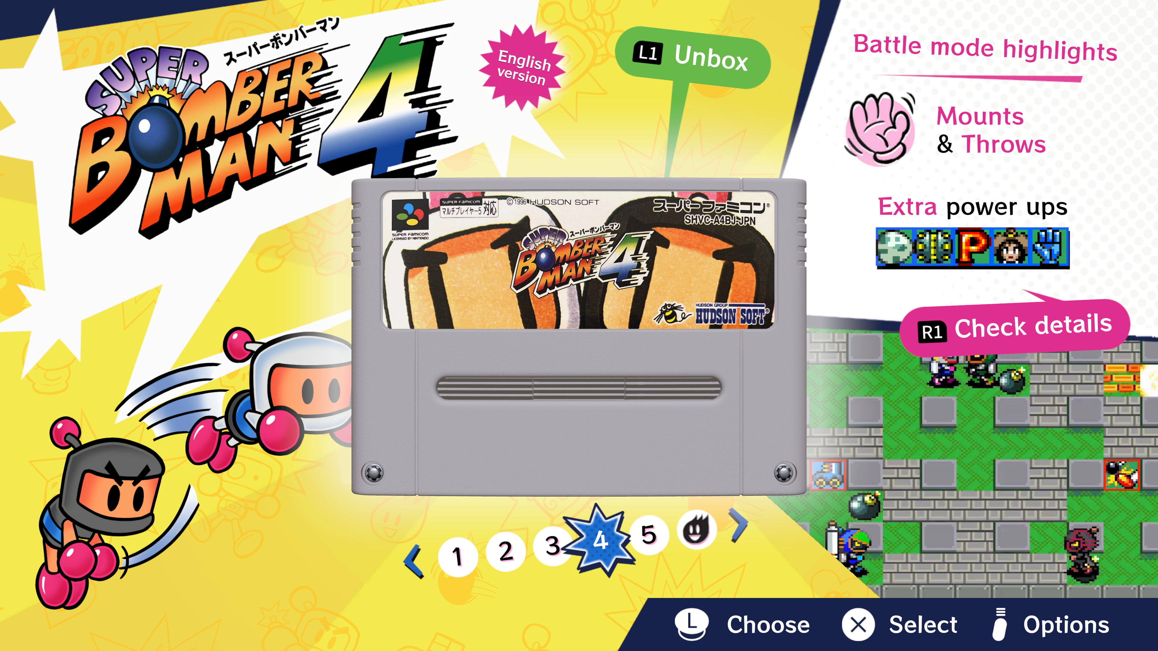 Party battle game "SUPER BOMBERMAN" is now available as a collection featuring a total of 7 titles with 12 versions across JP, EUR and USA, including the long-awaited localised versions of the unreleased SUPER BOMBERMAN 4 and 5!